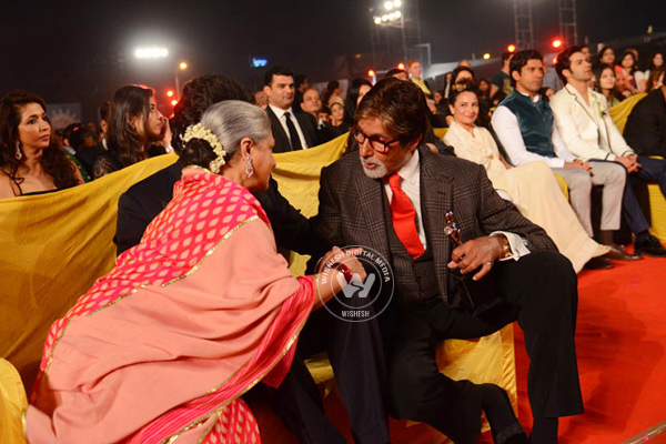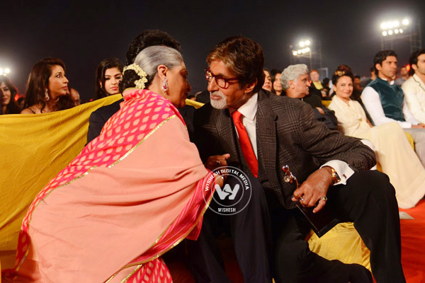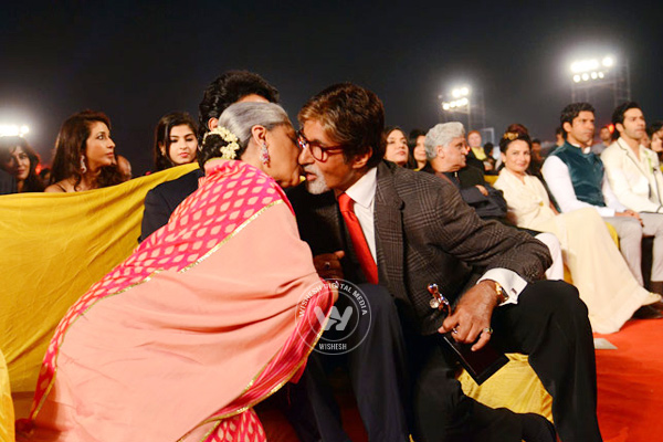 But surprises didn't end there. Jaya Bachchan, for the first time in public, acted out of her character and landed a peck on her husband's cheek, after Big B returned to the front row after collecting the life time achievement award.
