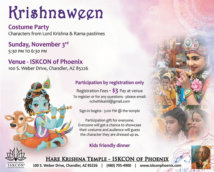 ISKCON of Phoenix invites you to participate in Krishnaween event, please find the flyer for more details