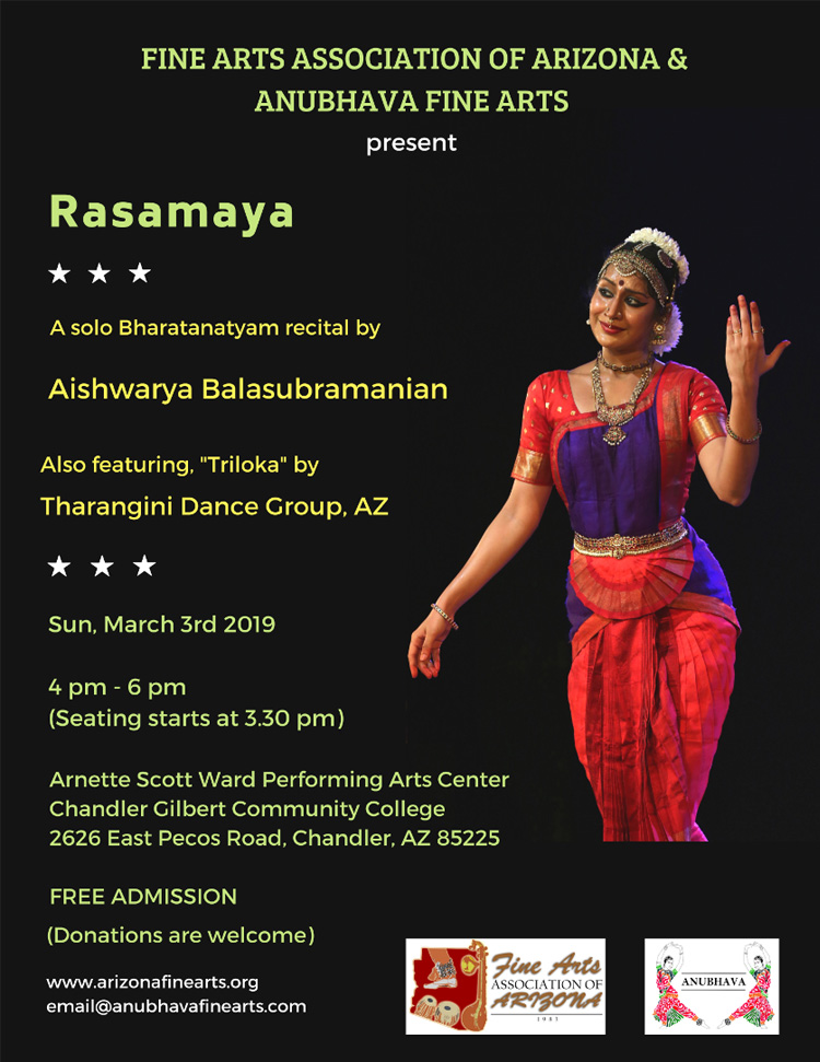 Fine Arts Association of Arizona and Anubhava Fine Arts is delighted to announce Aishwarya's solo recital.