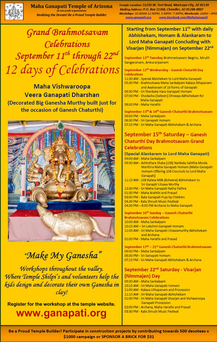 September 13th & 14th Ganesh Chaturthi Brahmotsavam