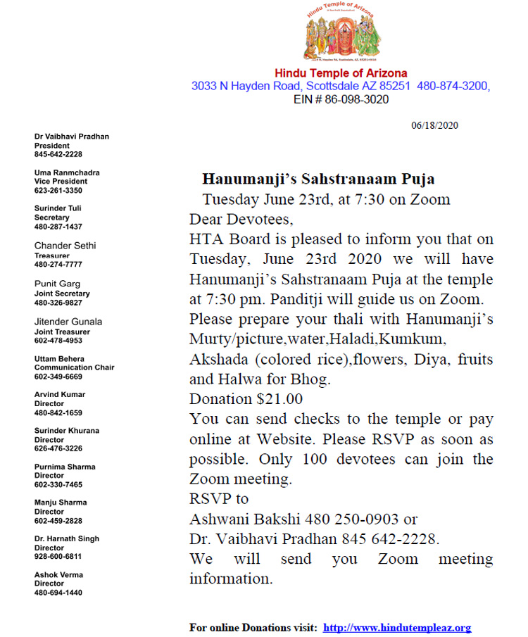 Dear Devotees, please see below pooja details. Please RSVP by email so that the zoom link can be shared.