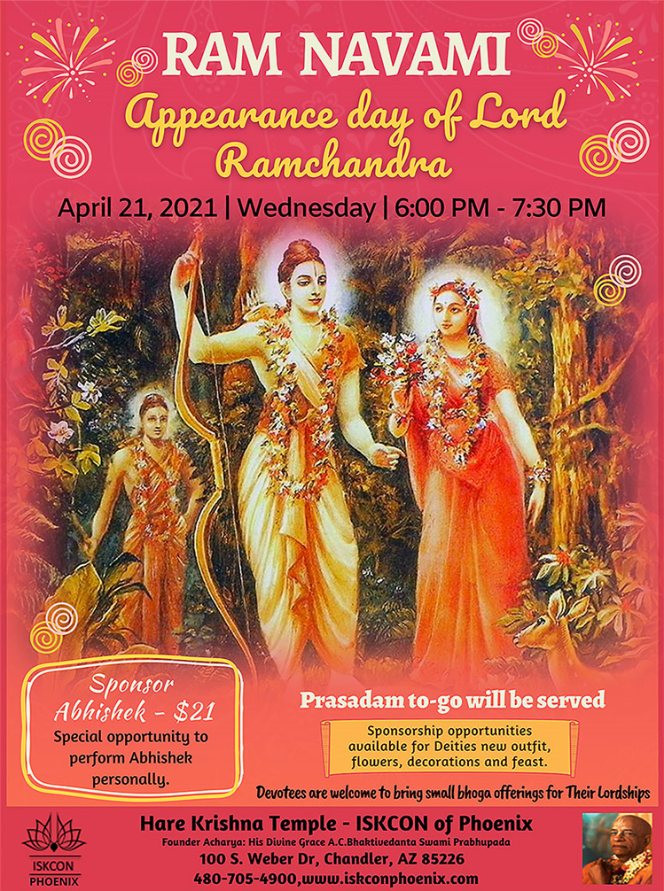ISKCON of Phoenix invites you all for Sri Rama Navami festival event on April 21st 2021 6.00PM to 7.30PM