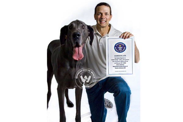 This five feet tall and seven ft long blue Great Dane held the Guinness world record for being the tallest in its class. Not just that, it also weighed 100lb more than the average Dane.