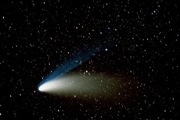 The second tail is narrower and slightly blue in color due to the heating up of the weakest molecule that makes up the comet which is ‘carbon monoxide’. This heating up is due to the UV light radiating from the sun.