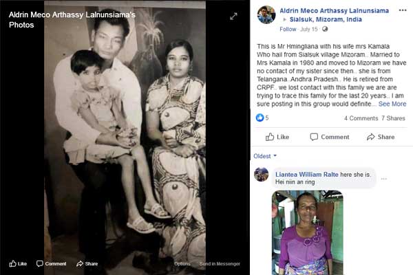 On July 15, she posted a request on Mizoram News, a Facebook group, seeking help from its members in locating her sister. She also attached her photo as a five-year-old with Kamala and her husband Hmingliana.