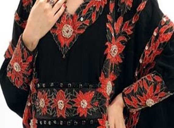 The abaya is mounted with a rare red diamond which Wingham got from one of her gem collector friends. The piece features 2,000 white and black diamonds and 1,000 rubies and over 200,000 hand stitches in 14-carat white gold thread.