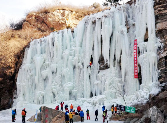 Even as news of the cold snap icing up the Niagara Falls in the U.S. continues to grab headlines, bitter temperatures in China have frozen a towering waterfall in the Miyun District into rock solid.