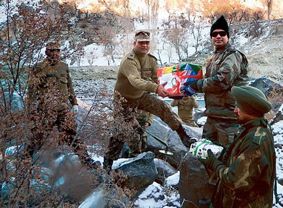 Even amidst on and off tension at the borders, the two warring nations put forth a stunning display of solidarity by swapping sweets and gifts to celebrate the birth of Prophet Muhammad on the Line of Control in Jammu and Kashmir yesterday.