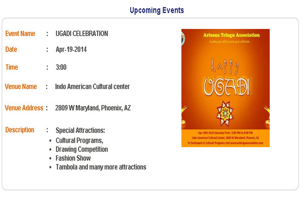 This year AZTA has organised Ugadi celebration for the Telugu people in Arizona on 19th April.