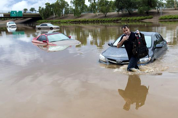 The heavy deluge has prompted the governor of Arizona Jan Brewer to declare state emergency as floodwaters killed one, turned freeways of Phoenix into lakes and deep running canals and forcing dozens of schools, offices and House of Representatives to remain shut.