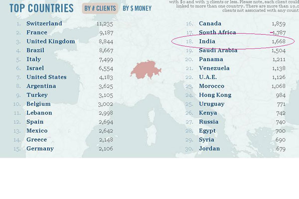 In terms of the number of account holders, India is at 18th place (1,668 account holders), while Switzerland is on the top again with 11,235 account holders. Others in the top-five include France, UK, Brazil and Italy.