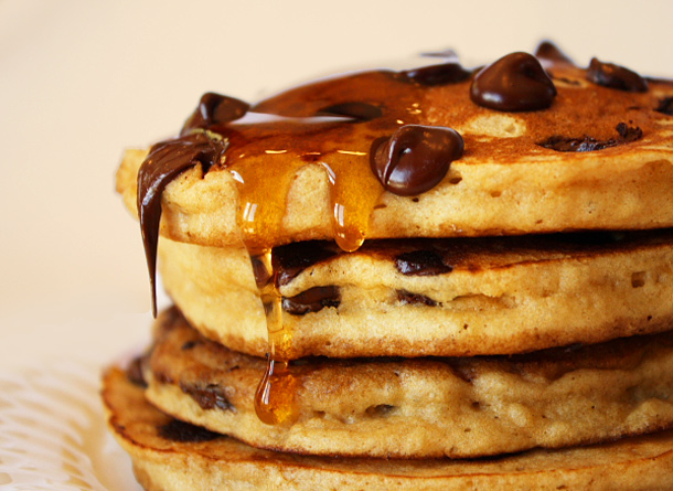 Who wouldn't drool over the idea of indulging in golden brown, caramelized pancakes topped with melting chocolate chips and honey for breakfast. Yummy!