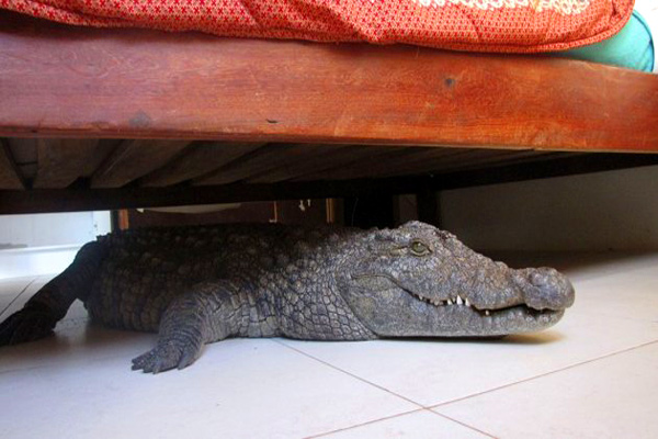 Furthermore, the giant croc remained secretly for eight hours until the following morning when Whittall even perked up on the edge of his bed as the deadly creature lay fractions away from his suspended feet. Whittall, 41, was only cautioned to the freakish scene at Humani Lodge in Zimbabwe, when he was enjoying some breakfast in the kitchen and heard the dumbfound screams of a housemaid. Whittall, who is a director at Humani, rushed back to his room and was terrified to discover the gigantic crocodile nestled under his bed. He expressed the really upsetting thing about the whole episode is the fact that he was sitting on the edge of the bed that morning, bare foot as well as just centimetres away from the croc. As a matter of fact, Crocodiles are experts at hiding, that's why they have survived on Earth for so long and why they are the ultimate killers in water. In fact, they know how to keep quiet and go unnoticed, it's in their nature.
