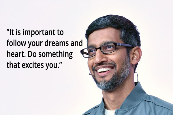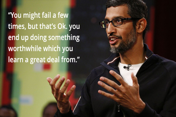 The Indian American Chief Executive officer of Google Sundar Pichai is one inspirational, and pioneering individual. When he speaks, he pours a profuse of wisdom. Here are some of his invigorating quotes.